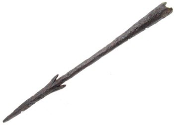 Since the iron used for the shank (except for the tip) was comparatively soft, the shank would bend on impact. This was beneficial for the thrower, since it made the weapon rather useless for the enemy; after impact it would no longer function well as a throwing weapon.